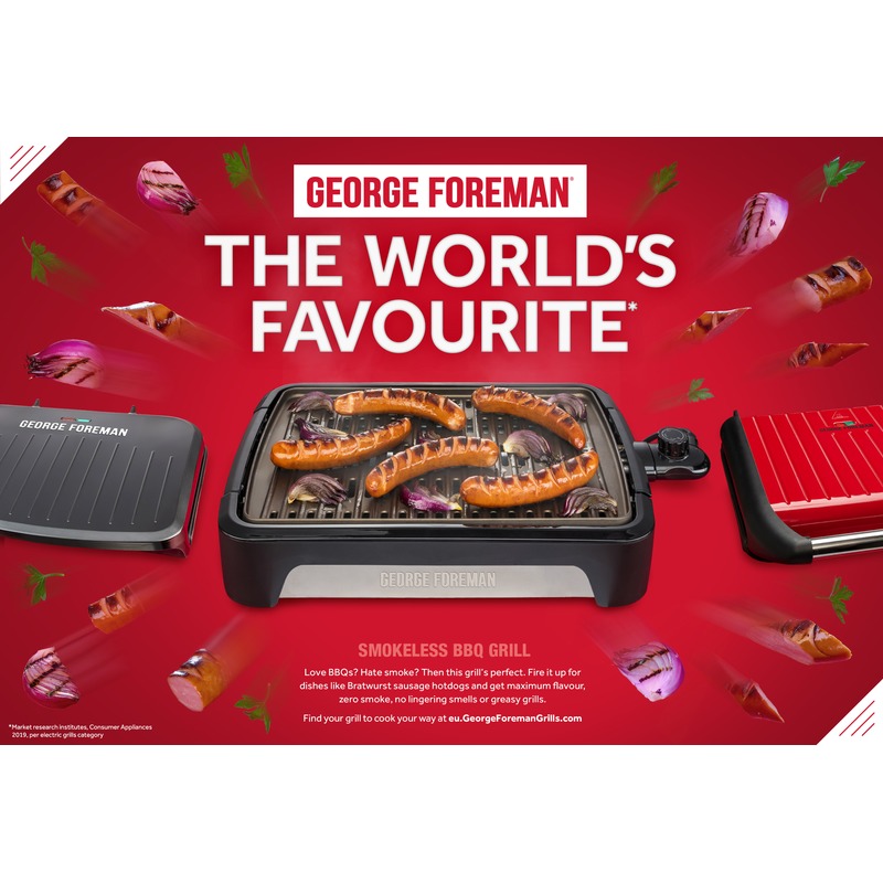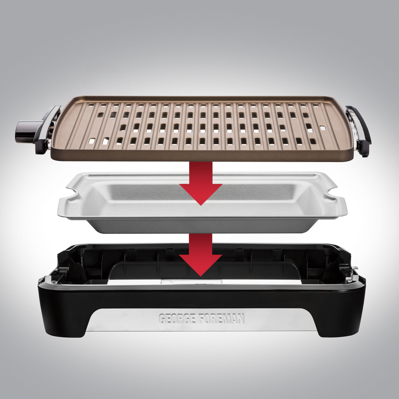 Tento gril George Foreman 25850-56 umožňuje ľahké grilovanie a umývanie v umývačke riadu. Bezdymový gril BBQ 25850-56 je vhodný na prípravu väčších porcií, vhodných pre väčšie rodiny alebo grilovanie s priateľmi.