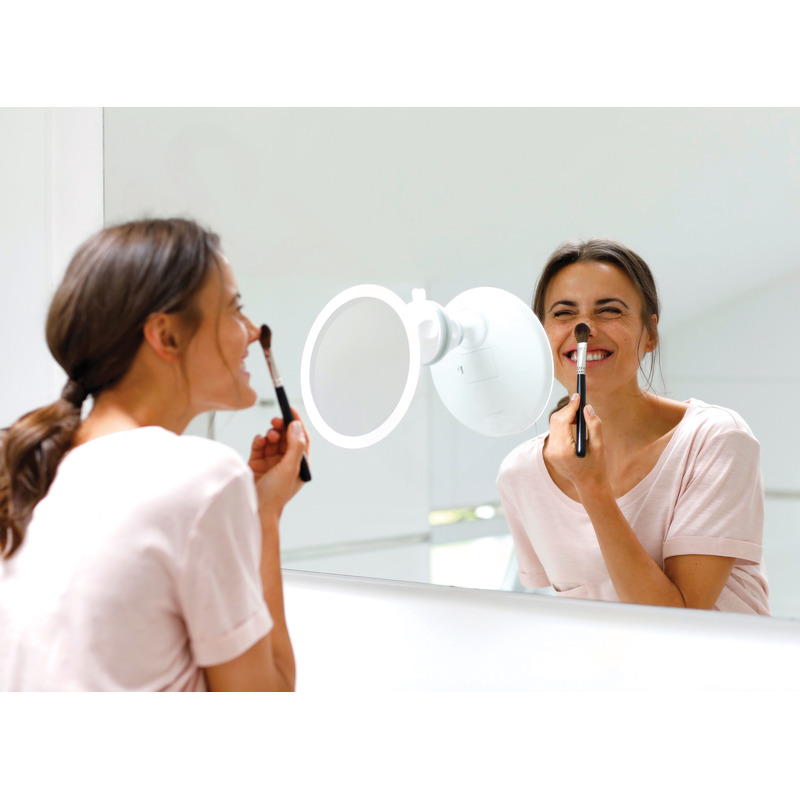 Kozmetické zrkadlo Medisana CM 850 uľahčí vašu dennú starostlivosť o tvár. Osvetlenie LED a päťnásobné zväčšenie zabezpečia dokonalý make -up. Počas cestovania oceníte kompaktnú dimenziu. Osvetlenie je poháňané 3 AAA batériami, ktoré sú zahrnuté.