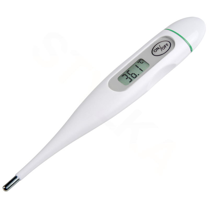 Vymeňte svoj teplomer ortuti spoľahlivým digitálnym teplomerom FTC 77030. Je navrhnutý na meranie telesnej teploty v podpazušiach, konečníku a ústach. Keď sa zapnete, zobrazí sa posledná nameraná hodnota a po meraní sa vypne asi po 8 minútach.